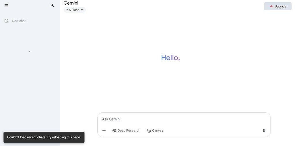 If your connection drops or becomes unstable, Gemini may get stuck on a blank or loading screen.